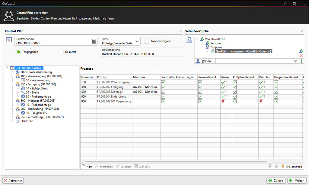 Sie unterstützt die strukturierte Umsetzung aller APQP-Phasen (Planung, Entwicklung, Prozessvalidierung, Serienüberwachung).