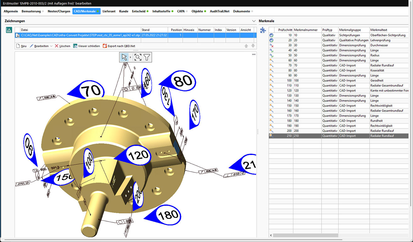 Ja, neben der Verknüpfung zu anderen CAQ-Modulen ermöglicht die PPAP-Software einen direkten Datenaustausch durch integrierte CAD-Kopplung zur automatisierten Stempelung von Zeichnungsmerkmalen. Außerdem können Sie Messmaschinen, Prüfautomaten und Laborgeräte sowie marktübliche Interfaces und mehrdimensionale Messmittel zur automatischen Prüfdatenerfassung anbinden.